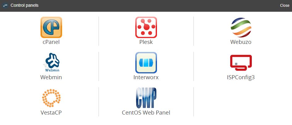 - Webes control panelek automata telepítése (pl. cPanel, Plesk, Webuzo, Webmin, InterWorx, ISPConfig, VestaCP, CentOS Web Panel, LAMP szerver)
